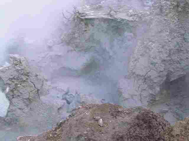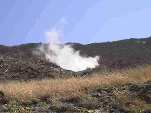 3.N35.14.16 E139.01.32周辺 地図に記載されてない噴気。 調査だ、とりあえず確認しようとギリギリまで近づいた 勢いよく泥を吹き上げていた。マッドスポットです。 さすがの隊長もここに入ったら数分で血の池地獄行きです。 この入浴は一番最後と決めているのでしっかり諦めました。 絵的には感動ものです。