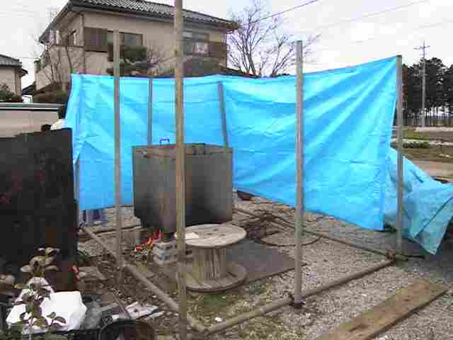 周辺環境を考慮しビニールシートで周りを覆います。 おぉぉぉっなんか超秘湯の雰囲気になってきたぞ! ! !