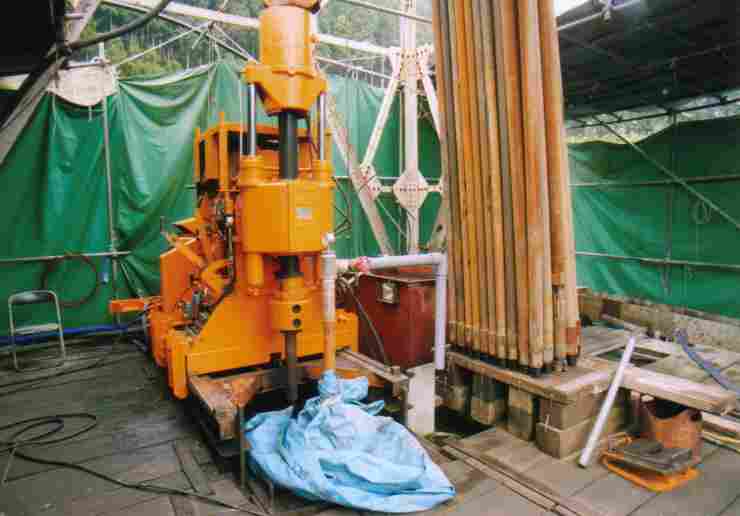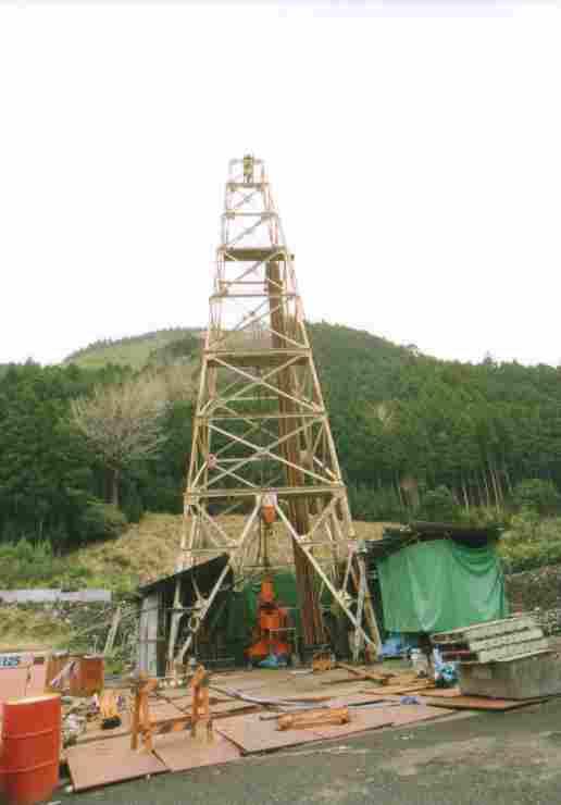 4.宮ヶ原掘削現場 リグ発見から早3年・・・・ ここに足を運んだのもこれで6度目。 掘削位置には既にL字型のパイプが接合されている。 圧力計の値は零。動力揚湯??or失敗?? 今後、ここはどうなるのだ??