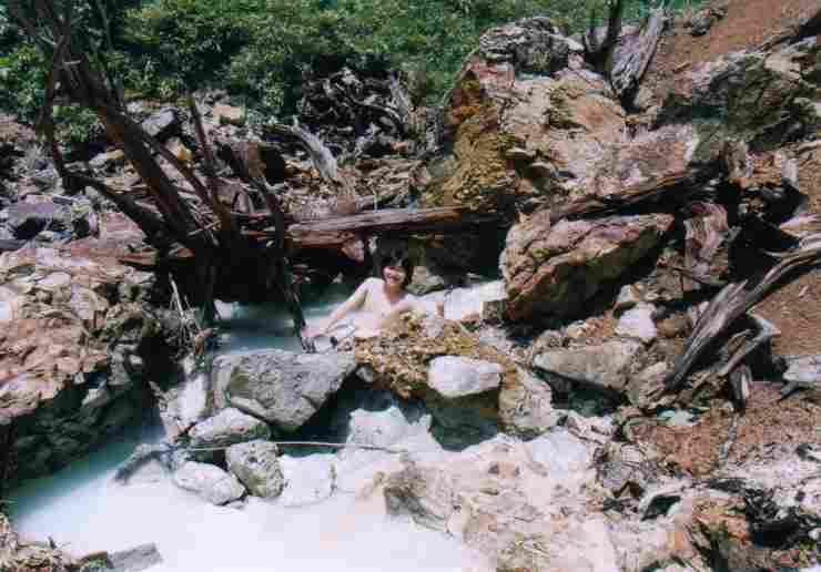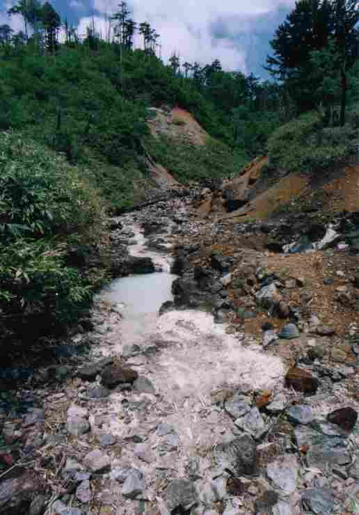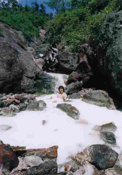 6.N36.37.59 E138.29.43 マークなし 硫化水素ガス自噴地点 B(10ppm以下/h) 地点全体のイメージ 沢上流 18℃ 中間-1 38〜40℃ 中間-2 41℃ pH3.8 沢下流 おまけ。。あまりに気分がいいのでどこでも入浴しました。 ※ゴミ一つ落ちていない空間である。いつまでも大切に守りたい。 また、行動を共にしたした仲間の協力で到達できた一湯です。 みなさん〜ありがとう。先人の湯船感謝。ありがとうございます。