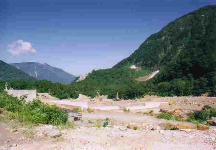 ACCESS-6 (6/9) ・立山温泉跡地・ ↓ 砂防ダム工事現場を横に見ながら最終目的地の新湯を目指します。 ※徒歩の場合は跡地周辺で1泊になることでしょう。
