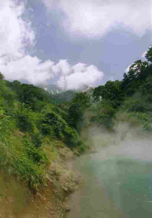 1.新湯 今回のOperationはこれに出会うためにあった。 直径は30メートル池全体が温泉。飛び込みたい、、、 しかし、湯温65℃では諦めるしかない(;_;) 美しく神秘的な池 この景色を見るだけでも満足です。65℃ pH3.5 池の湯が滝になって落ちるポイントがありますので 豪快に贅沢な新湯・湯滝の打たせ湯です。38〜40℃