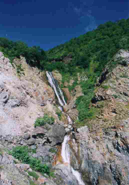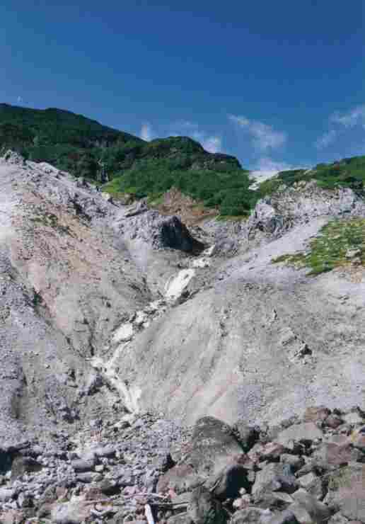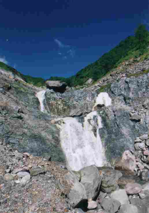 ●奥湯川温泉 -湯川源泉から見える白い滝 今回はこの滝の上部を調査します。これを見て感じないハズがない。 -向って右側にある滝 -左側にある滝 およよ。ここにもかなり高低差のある白い滝が、、、 詳細はこちら(拡大写真) ↓↓ ・拡大-1(下部) ・拡大-2(中央部) ・となりの自然湧出