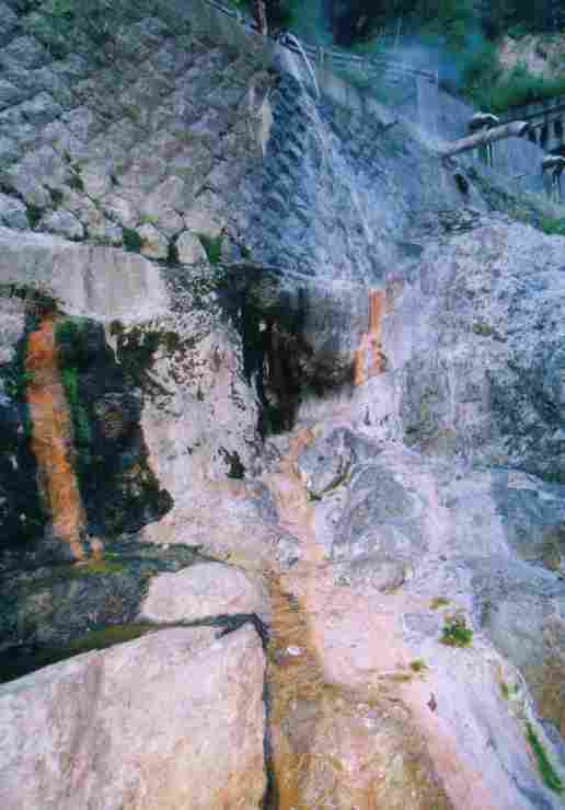 ●取入隧道温泉 蒸気が激しくブローしている集湯施設の一部から。。。 成分不明 85℃ pH8.4の湯がオーバーフローしている。 つるつる感バッチリ。
