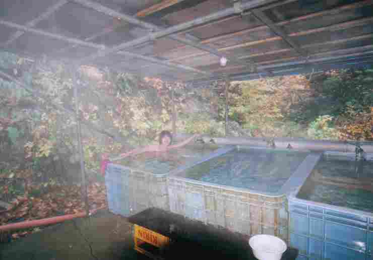 ●丸太沢の湯 新潟県北魚沼郡湯之谷村 今年で撤去との噂があり、 ヤバイ!と感じ冬季閉鎖前に大慌てで駆け込みました。 -仮設風の湯小屋 -ポリのコンテナが3個(女湯は2個) バンバン源泉が注ぎ込まれています。43〜40℃ 雰囲気・紅葉とええです。
