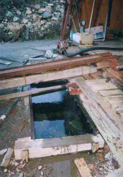 ●掘削現場 群馬県利根郡片品村 巨大なタケノコが!リグは絶対に確認します。 スチールバスに源泉が!36℃ pH8.7 硫黄臭 白い湯ノ華 ツルツル感バッチリ!