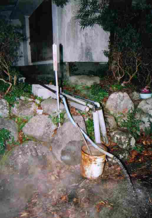 廃業した旅館の湯をご好意で自由に頂くことができる。 一応温泉スタンドでしょう。50〜60℃ pH未測定。