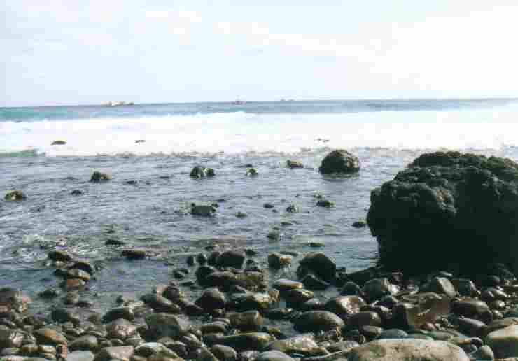 写真の中央付近、高温の自然湧出あり 当日は波浪警報も出ていることもあり完全に引潮状態にならず よく判らなかった、仕方ないので海17℃に入浴したら 大風邪をひいた。