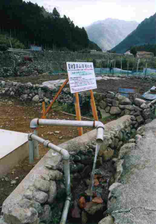 ●宮ヶ原の掘削現場-続報 これにはぶったまげた! えっ! 深山深層幻水とやらが地下1000mから動力揚水され 垂れ流されている 腹を抱えて大笑いしてしまいました-失礼! 硬度153mg/L 13.1℃ pH7.6 硫黄臭あり 飲泉するとこれが美味い!持って帰ってcoffeeを飲んだらイケた。 ※寂しそうにしています。みなんさもどんどん利用しましょう。 参考:掘削中のレポ 2000.04.14〜16取材