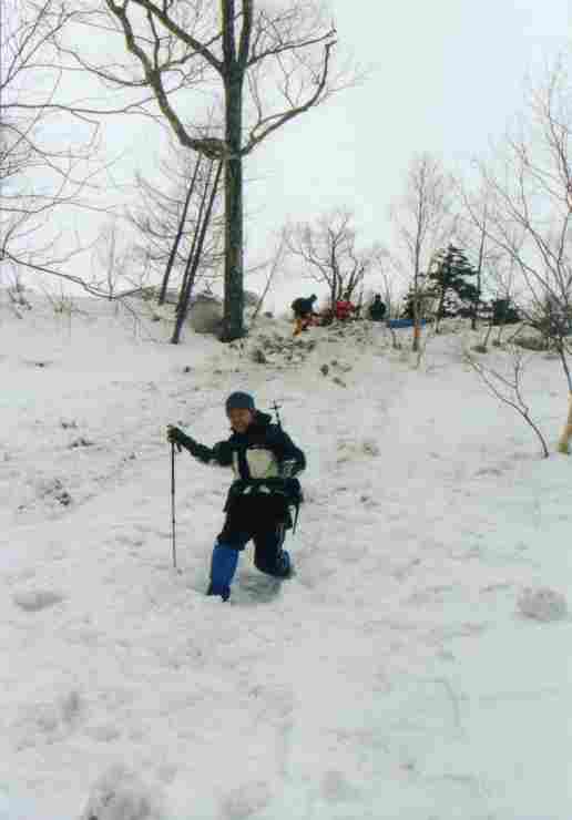 ・2/11 斜面を下る -"さお"が切り込みます、キマッテルー?! オラは尻で滑り降りました^^;