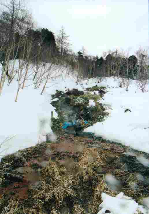 ・4/11 ここかな? GPSでプロットしてはいましたが予想以上に手前にあり かなり谷方向にドリフトしてしまいました。 一番隊ちゃるが湯けむりを発見、接近すると・・・