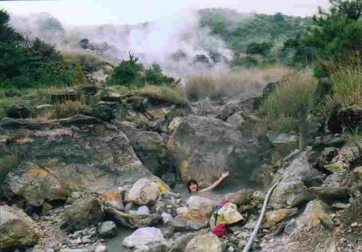 2.上地獄温泉 阿蘇郡長陽村 地獄温泉の上に地獄があった。 40℃ pH2.0 先人の作った湯船に飛び込んだ。