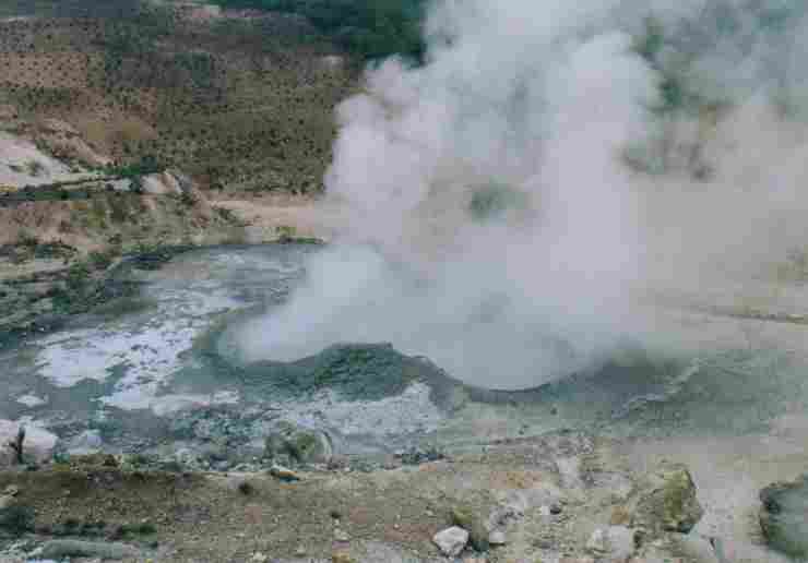 5.上塚原温泉 大分郡湯布院町 44℃〜 pH1.4の湯溜まりに浸かる。う〜ん酸っぱい)^o^( なかなか迫力があるシーンです。 さすがに浸かれません。