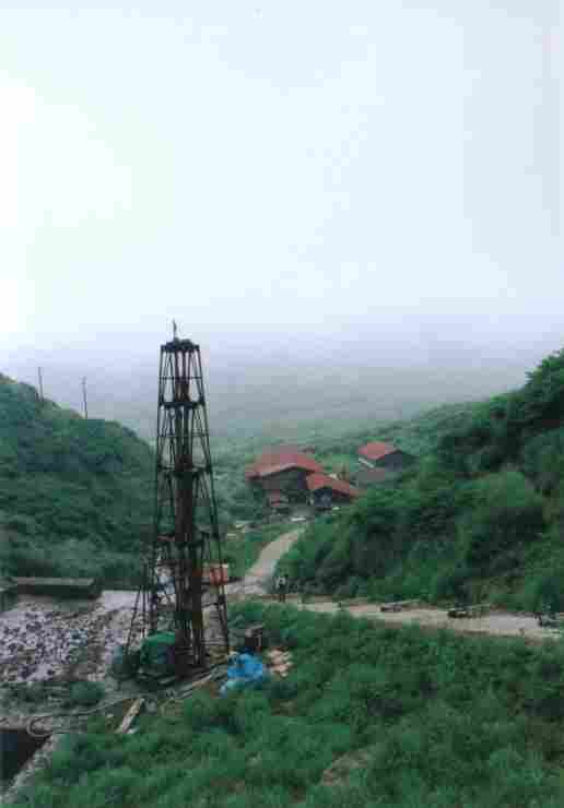 -掘削中の新源泉 小屋より上部に新源泉を掘削中、今後に期待したい。 深度は確か140mだったような・・・