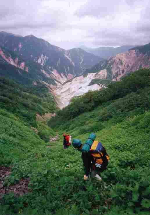 ガレ場を過ぎると次は藪こぎ、慎重にね!