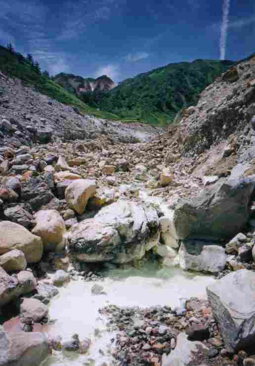 入浴はしていないけど深い窪みがあり。湯温が低いのが残念 17℃ pH3.9 こんな鉱泉系はいたるところから自然湧出している。