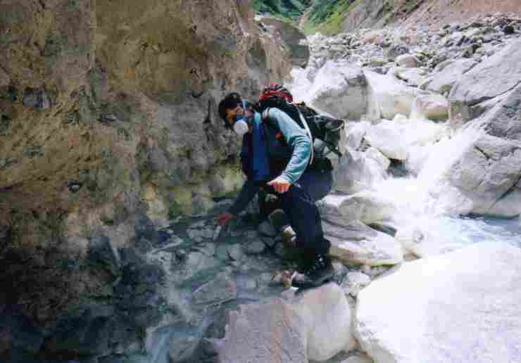19.帰らずの湯-2 -65℃、pH2.5 pHメータで測定中、硫化水素の濃度はなんと50ppm以上。