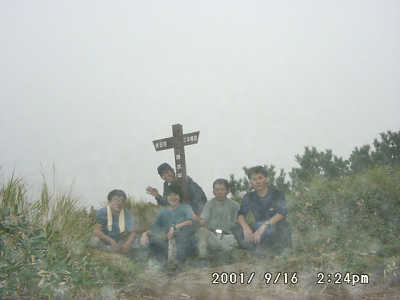 -霧中の"湯けむりDeltaforce"! 左から佐藤・降旗・草柳・斉藤・森 (敬称略) 写真提供:斉藤さん