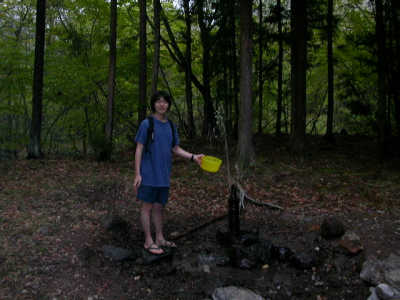●群馬県片品村の一湯 02.05.11 安政遠足マラソンの前日に斉藤さんと片品村の源泉調査をしました。 ・下白根温泉 鹿の湯 36℃ pH8.2 林の中にひっそりと自噴する"鹿の湯" ケモノノも浴びに来ています。 ぼくも浴びてます。