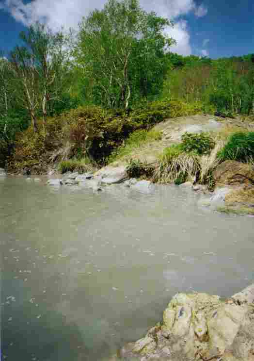 ●地獄沼-三景 青森県 02.06.01〜02 気分転換で一人青森へ 念願の地獄沼に浸かる^_^; -1 この辺は70℃以上・・・入浴はできない。 -2 沼全体が温泉ですが・・・35℃〜 -3 ギャラリーからも離れている水深的にもここがベスト!42℃ pH0.3 身に沁みすぎた一湯。危険を感じ急遽、猿倉温泉で成分を洗い流す。 塩酸の中に入った感覚でした。溶けるかと思った(-_-;)