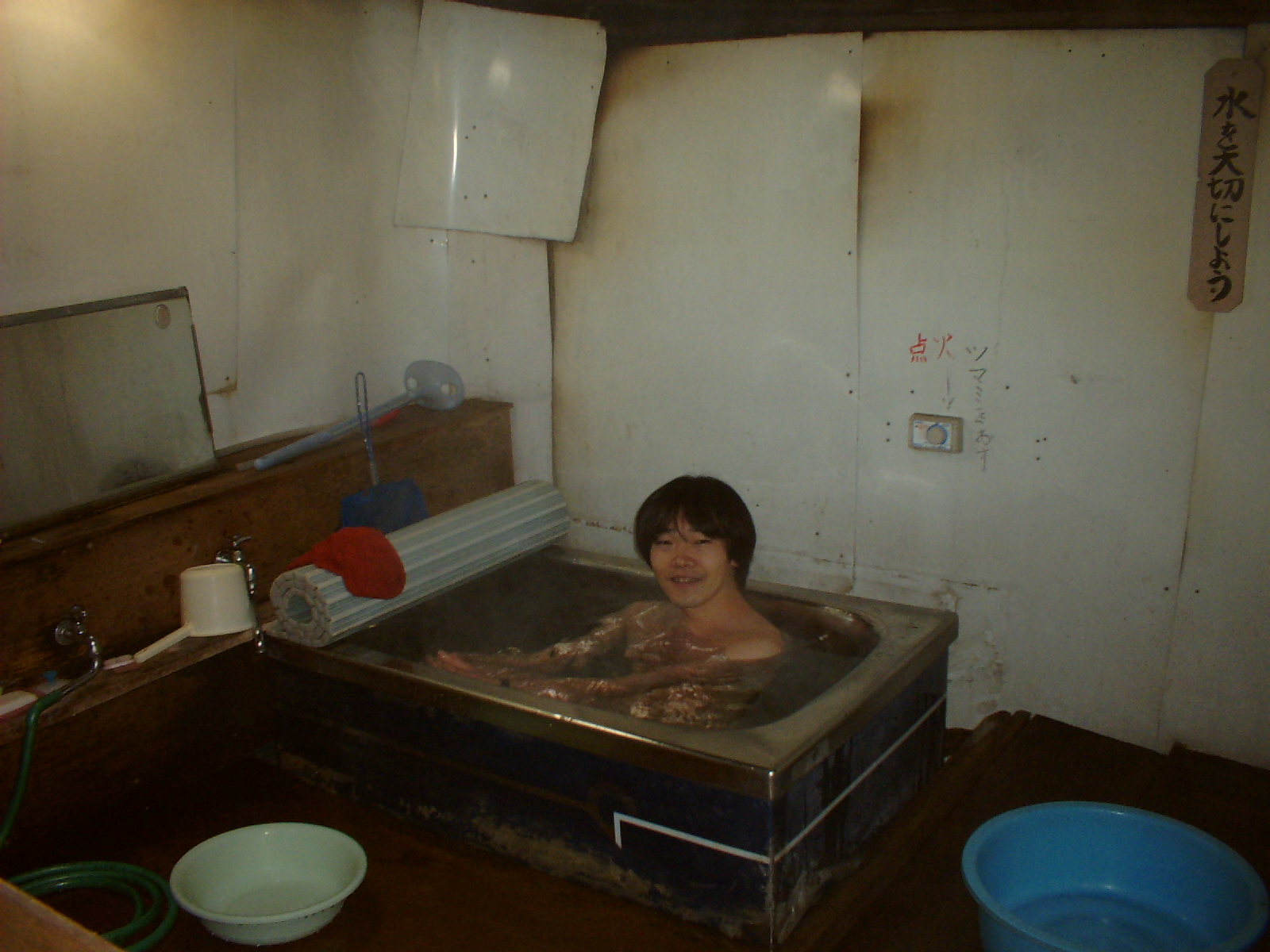 以前は温泉水を汲んで自宅の風呂で浸かったが、今回は特別許可で入浴。ウレシイ!