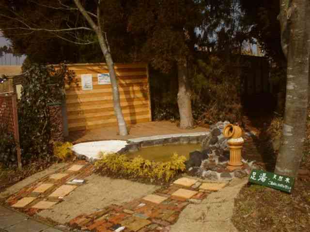 無料の足湯 49.6.℃、pH6.9 浴後のさらさら感がいいです。ぽかぽか温まる石膏泉系の泉質。