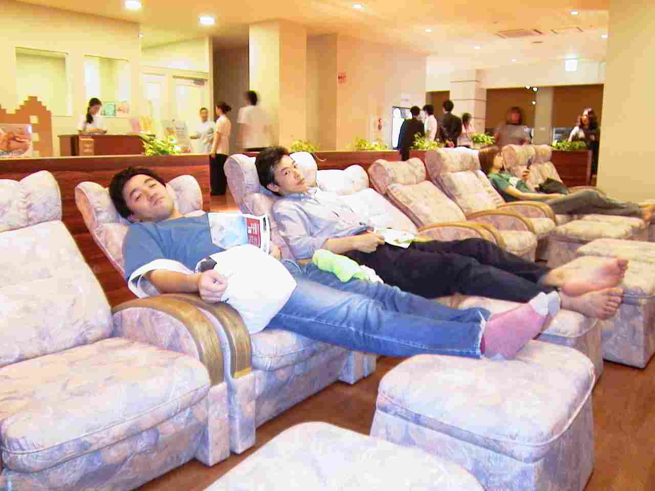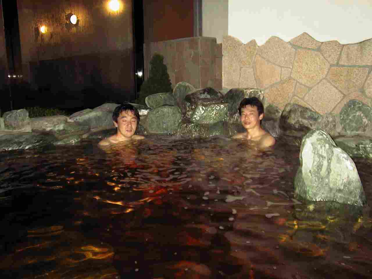 ●高井戸天然温泉 美しの湯 03.05.29 今日はラーメン+温泉Day〜会社の悪友を引き連れ行って来ました! 記撮時、慌てて入った季節の湯(バラエキス入り)(-_-;) こっちが本物の温泉。薄褐色透明 ナトリウム-塩化物強塩泉、つる感+アンモニア臭の思わぬパンチ力にびっくり! 39℃ pH8.1(実測)分析表は準備中とのこと。 明日が金曜日なのも忘れてくつろぐ二人。気分は"どう〜?!"^_^; 営業時間10時〜23時 大人800円〜