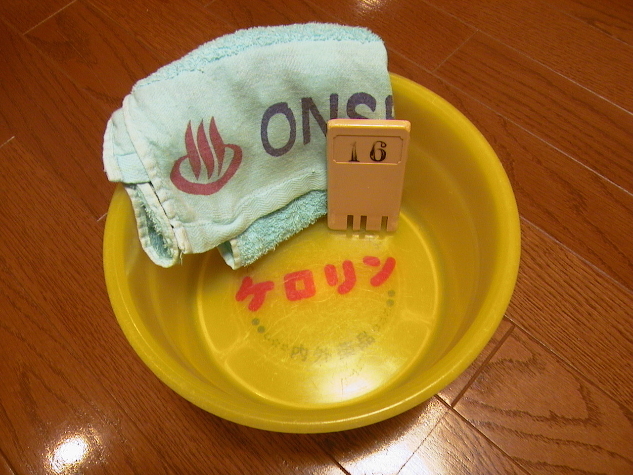 ちょうだいと言ったら、どうぞ〜とケロリン桶と下駄箱の札鍵を頂きました。