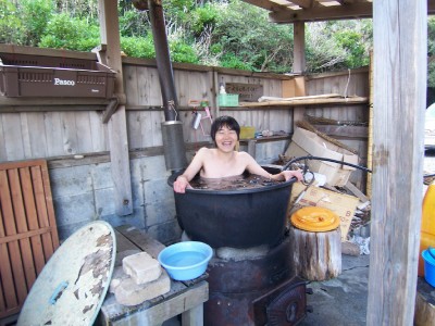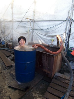 -朝はドラム缶風呂だぜ、イェー