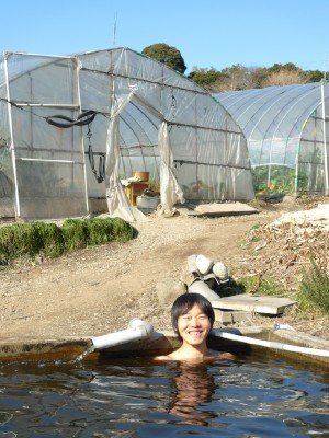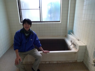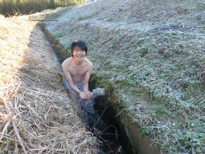 5.霜が残る中、浴びる。体感17℃ しかし寒さはそんな感じない