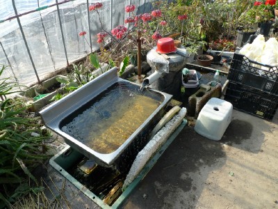 18.水耕利用の鉱泉 右の像と源泉は同じ、ブランチしているだけです。