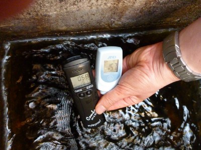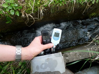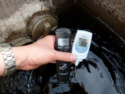 15.6℃ pH8.49 EC0.92 #1                  14.9℃ pH8.38 EC0.58   #2 美味しい水の隣に茶水の井戸
