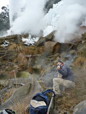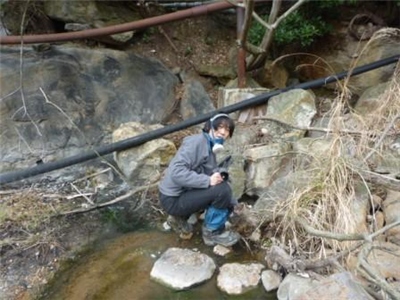 ここで溜まったペットボトルのサンプルを一気に処理しました。9. 妙見立花上温泉のオーバーフロー