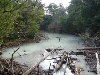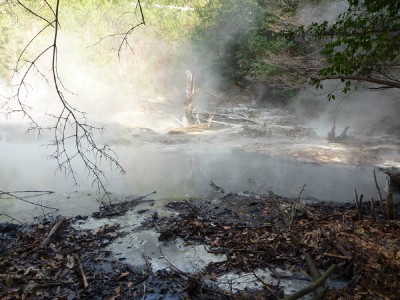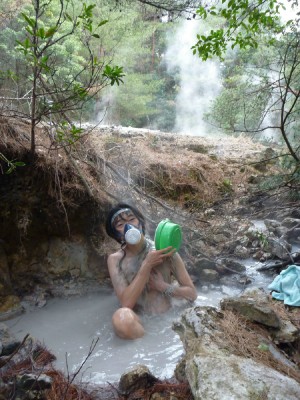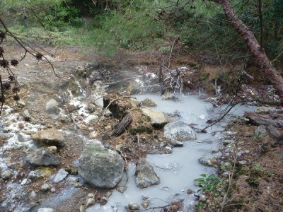 バックに鳥地獄 脇からもゴボゴホ沸いています。