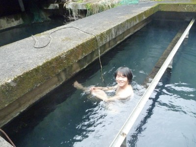 ハイな気分で魚と一緒に入浴じゃ、なんか楽しくて像2枚あげちゃうょ 注)源泉口はもっと温度あり11.出た 念願のケーシング管