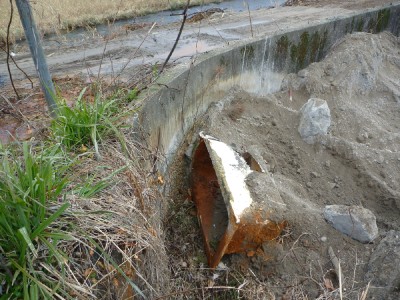 じろさんをご案内、なんと! 源泉は生きているが、ポリバスは大破していた。