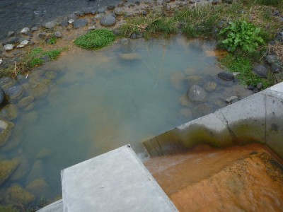 人に良いことをすると、自分に良いことが帰ってくる。のどの痞えが取れた感じでスッキリ、嬉しい。次は水着持参でここに飛び込むゼヨ14.側溝に走る湯煙を辿るとオーバーフローをゲット