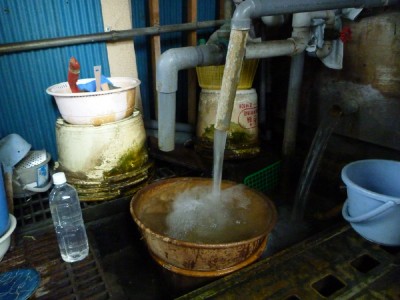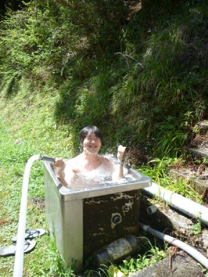 気が利く誰かがSUSバスを置いてくれたので、せっせと100円を投入し生源に浸かる。 気持ちいぃ〜