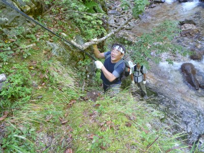 しかし、大清水橋を目の前にすると刀の柄に手が掛かり気分は一気に高揚して行くのであった!!9月10日(土) First Stage 根羽沢-湯沢−カラノマタ沢編