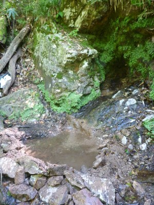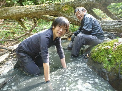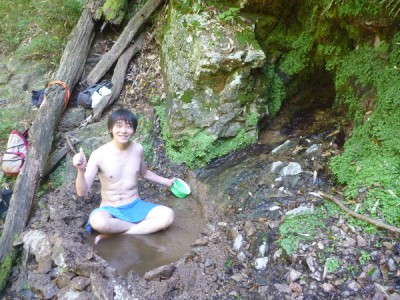 No.1より上流20m程に湧出 ちょろちょろ 浴びた。 熊もお気に入りのようだ調子に乗ってすべって遊ぶ