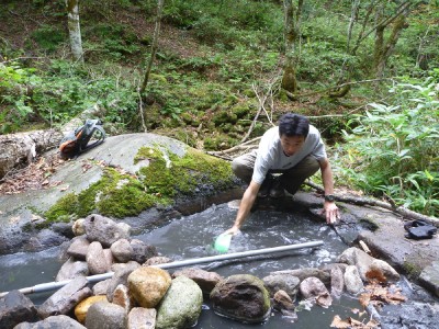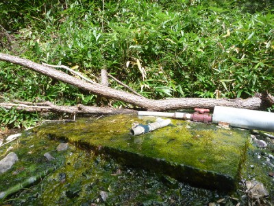 源泉施設から伸びるパイプからのおこぼれを頂く これはタダだよねぇ?!