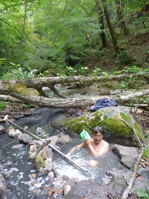 昔、使用していた露天風呂の跡を一部掘り下げて(発掘して) 力量相応の湯船をこしらえ中・・・きたきたきたキタァー 入浴タイム