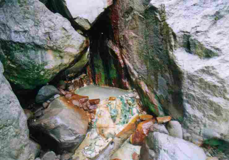 ●草津周辺の温泉調査Part2 2000.07.01 常布の滝下の湯 N36.38.20 E138.34.23 温泉マークの記載なし 知る人ぞ知る秘湯だろうか。 やっと出会えた湯、感動は大きかったのでした^^; (アタックまで雨で二回スライド遺恨の湯 結局は台風3号の洗礼を受けてしまいましたけど。。。) 滝の左側にその湯はひっそりと湧く。 38〜40℃ 湯船から観る景色は絶景である。 源泉調査はさらにつづきます。