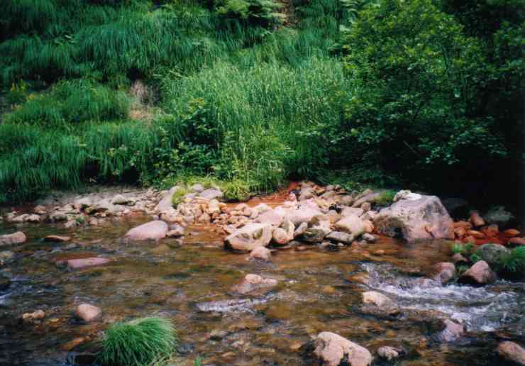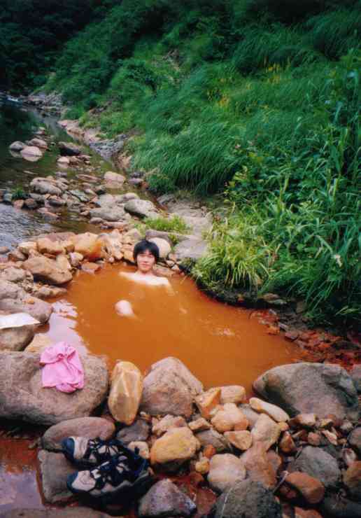 ●塩沢川温泉 福島県只見町 1999.07.10入浴 会津川口温泉の待ち時間を利用して立ち寄りました。 真横まで車でアクセスできる手頃な野湯です。 先人の作った湯船がありました。湯温33℃ pH7 川を渡るときは注意して下さい。滑りやすいです。 参考文献 野湯&源泉宿の旅 只見塩沢川温泉(仮) 自由国民社