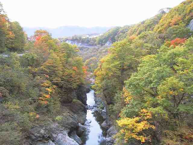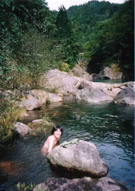 ●西野川畔温泉(仮) 旧木曽温泉源泉 長野県木曽郡三岳村 98.10.04入浴 木曽温泉の湯の色が古い文献と最近のガイド本とでは、湯の色が違うんですよ。 おかしいと思い調査しました。 旧源泉温泉マークの位置は写真中央川沿い向かって右側にあります。 99.10.31撮影 ロープを使いなんとか下まで下りました 上流のダム放水のため水位が上がっています。 こりゃ〜入浴じゃなく川に入っての行水?! 何十年ぶりかなぁ〜。 単純炭酸鉄泉が未利用で湧出しています。 ちなみに現在は鹿ノ瀬温泉より引湯です。