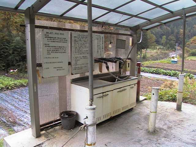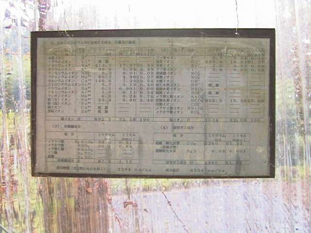 ●梨の木沢地区の温泉スタンド 長野県木曽郡木曽福島町梨の木沢 98.09.06入浴 木曽福島町 国道368 梨の木沢地区にある温泉スタンド。 湯温は低いです。飲泉はやや渋味のサイダー感覚 )^o^(。 99.10.31撮影 成分表&効能もしっかり書いてあります。なんとも渋〜い一湯です。施設管理費として寸志。